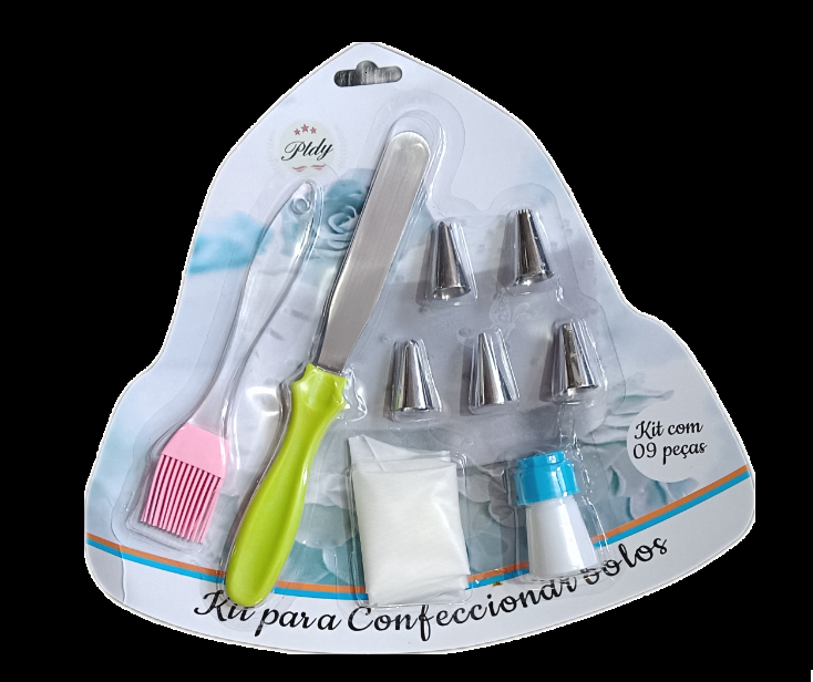 Set of 9 pcs For Cake Decoration Random Design Nozzle With Icing Piping Bag With Spatula and Pastry Brush Special for cake.