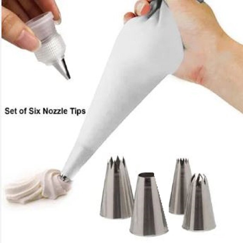 Cake decoration random design nozzle with icing piping bag with silicone pastry brush and steel spatula.